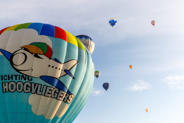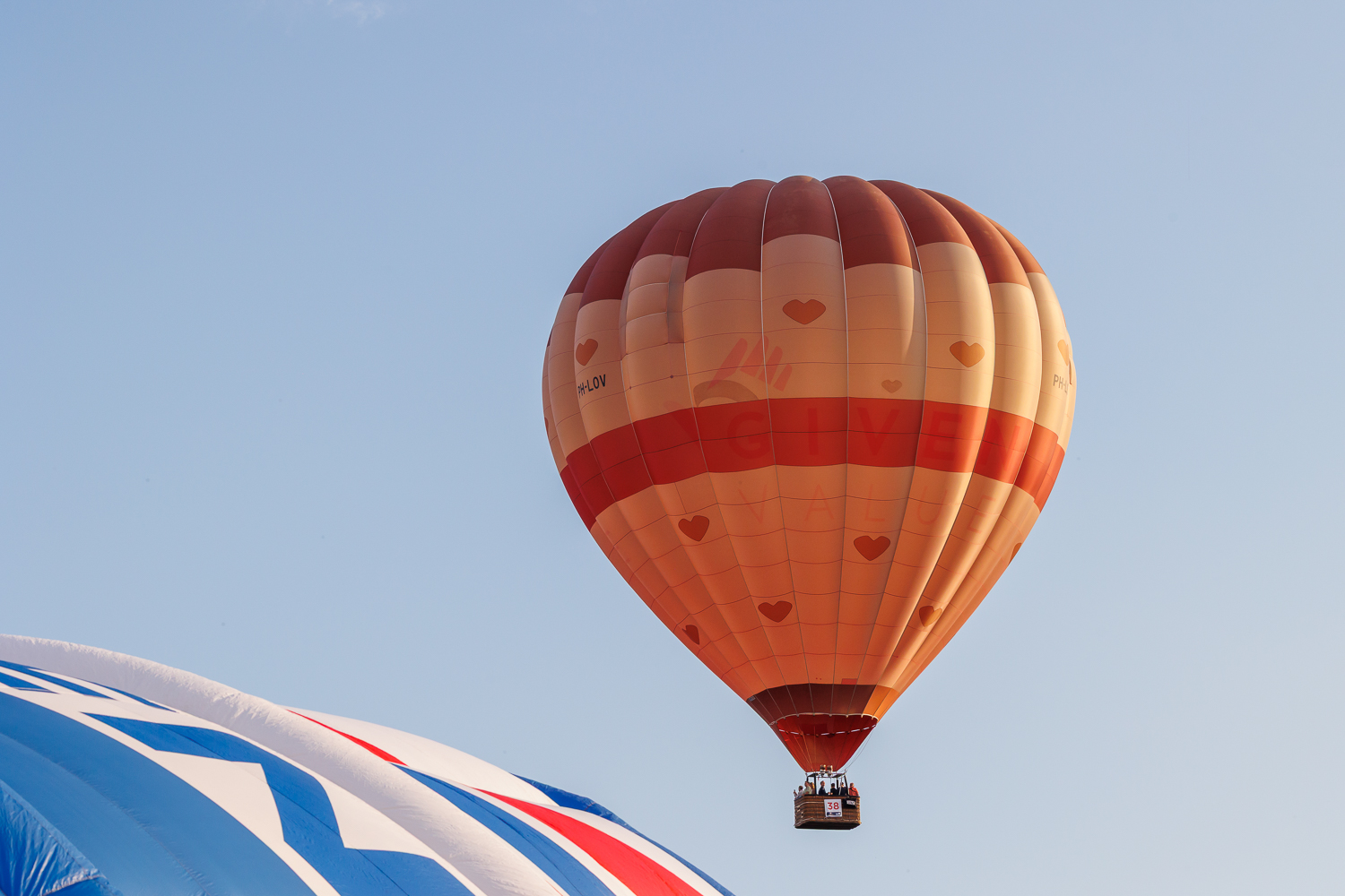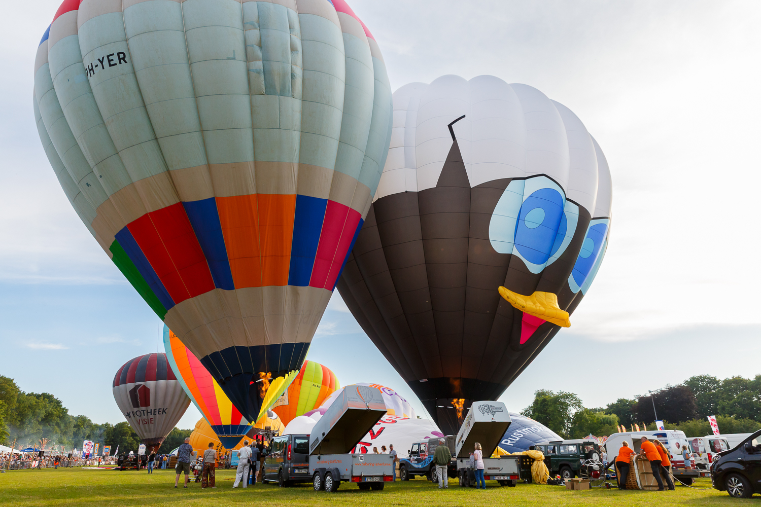 Waar de ballonnen op vrijdag alle tijd hadden om rustig op te stijgen, waren ze op zaterdag snel weg, door het geheel andere weer.
